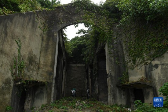 這是8月15日在日本廣島縣竹原市大久野島拍攝的現存最大的原毒氣儲存倉庫遺址。新華社記者 馮武勇 攝