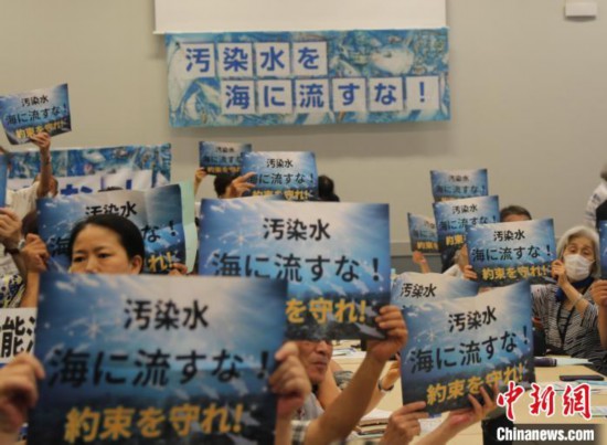 8月18日,日本民眾在日本參議院議員會館舉行集會,要求政府遵守當初作出的不擅自處置核污染水的承諾,撤回核污染水排海計劃。中新社記者 朱晨曦 攝