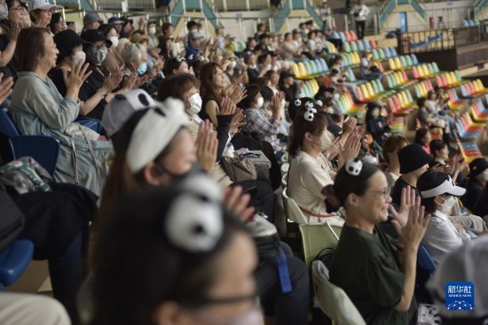 9月14日,觀眾在日本和歌山縣白浜冒險世界游樂園參加大熊貓“永明”31歲生日會。新華社發(中國駐大阪總領館供圖)