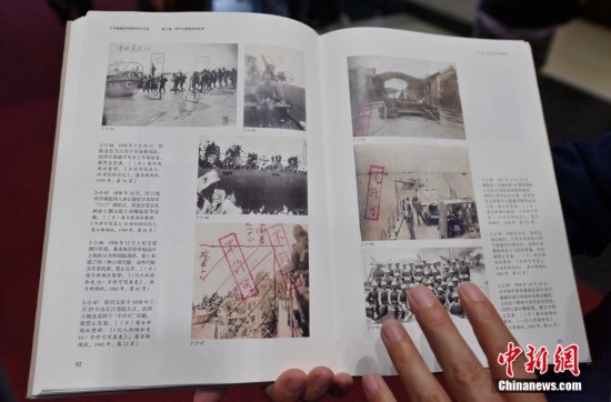 9月18日,吉林長春,偽滿皇宮博物院發布《日本秘藏侵華戰爭照片實錄》叢書。這套叢書共收錄珍貴歷史照片1407張。部分首次公開的照片是1931年到1945年日本侵華戰爭期間日本人用自己的鏡頭對這場戰爭的記錄。圖為叢書內收錄的曾被侵華日軍禁止公開發表的歷史照片。
