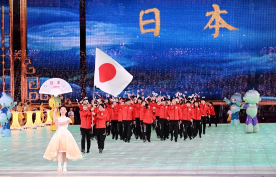 9月23日,日本代表團在杭州亞運會開幕式上入場。新華社記者 程敏 攝