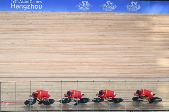 女子團體追逐賽上,日本隊在決賽最后階段反超中國隊,以4分21秒224的成績奪得金牌,創造新的亞運會紀錄;中國隊以4分21秒285摘得銀牌;中國香港隊在第三名爭奪戰中擊敗韓國隊,獲得銅牌。