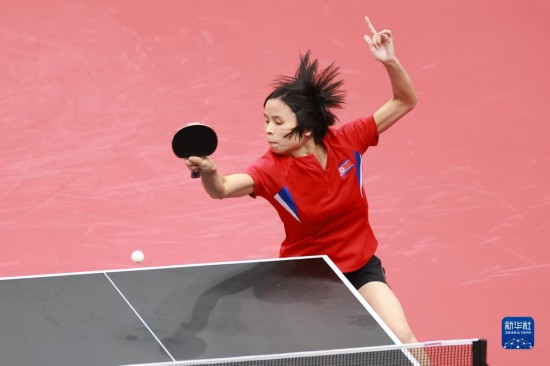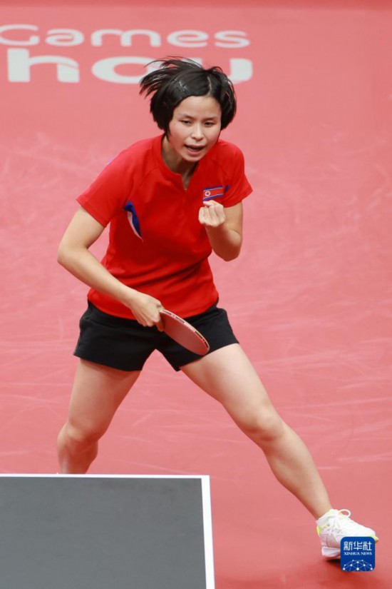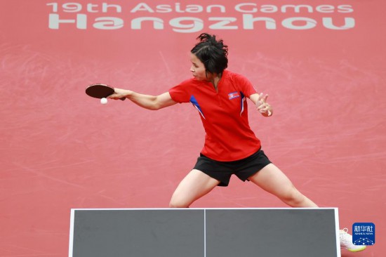 9月29日,朝鮮選手卞松京在比賽中回球。新華社記者 劉續 攝