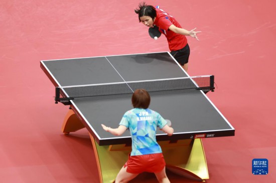 9月29日,朝鮮選手卞松京(右)與日本選手平野美宇在比賽中。新華社記者 劉續 攝