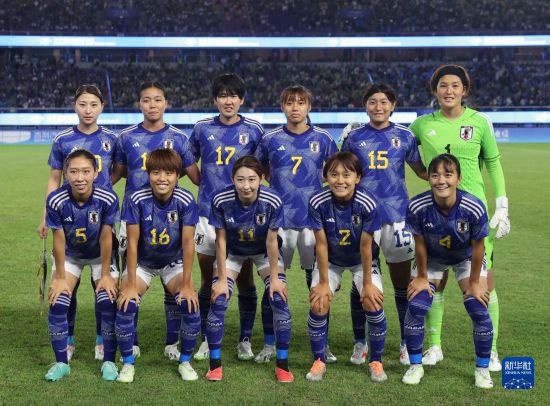 10月6日,日本隊首發球員在比賽前合影。新華社記者 賈浩成 攝