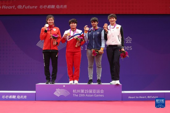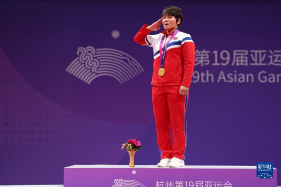 10月6日,朝鮮選手明亨穎在頒獎儀式上。新華社記者 吳壯 攝