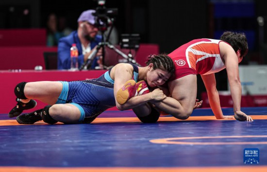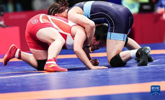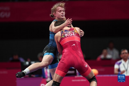 10月6日,吉爾吉斯斯坦選手艾蘇盧·特尼別科娃(前)與哈薩克斯坦選手伊琳娜·庫茲涅佐娃在銅牌賽中。新華社記者 吳壯 攝