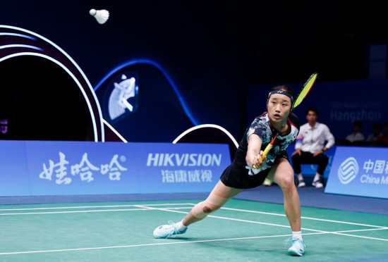 10月7日,韓國選手安洗瑩在杭州亞運會羽毛球女單決賽中。新華社記者 任正來 攝