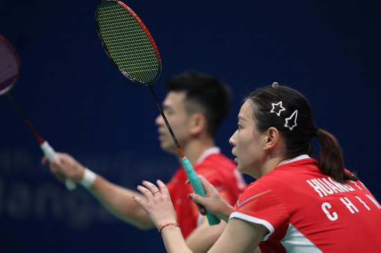 10月7日,鄭思維/黃雅瓊(右)在杭州亞運會羽毛球混雙決賽中。新華社記者 陳斌 攝