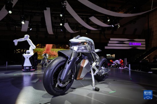 這是10月26日在東京的日本移動出行展雅馬哈展區拍攝的摩托車。新華社記者 張笑宇 攝
