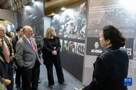 10月26日,觀眾在西班牙馬德里參觀《世界記憶、和平愿景——南京大屠殺史實展》。新華社記者 孟鼎博 攝