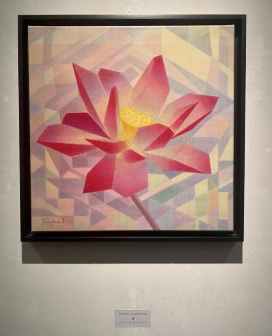 在此次畫展上,李芳芳共展出12副作品。其中以蓮花和蜻蜓等自然元素為主題的畫作6幅,以星座、宇宙為主題的畫作6幅。古井畫廊負責人古井篤志表示:“李芳芳的作品以自然和宇宙為核心,表現手法上將東西方美學融合在一起,在纖細中體現美,這種風格在日本非常受歡迎!