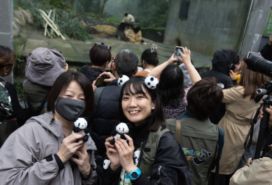 大熊貓“香香”日本親友團成員在中國大熊貓保護研究中心雅安基地看望“香香”(11月8日攝)。新華社記者 江宏景 攝