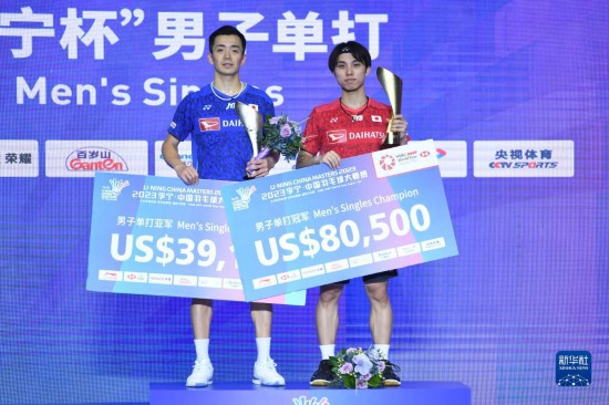 當日,在廣東深圳舉行的2023中國羽毛球大師賽男子單打決賽中,日本選手奈良岡功大以2比0戰勝隊友西本拳太,奪得冠軍。