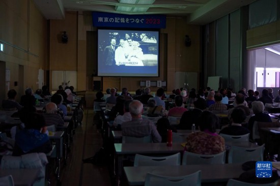 12月9日,在日本大阪,參會人員觀看介紹美國醫生羅伯特·威爾遜的紀錄片。影片講述了南京大屠殺期間,威爾遜冒著戰火全力搶救中國受難民眾的故事。新華社記者 張笑宇 攝