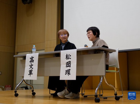 12月9日,在日本大阪,“延續南京記憶會”創始人、日本銘心會會長松岡環和在日中國學者高文軍回答參會者提問。新華社記者 張笑宇 攝