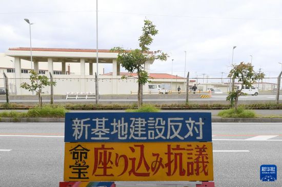 這是11月25日在日本沖繩縣的美軍施瓦布軍營附近拍攝的抗議邊野古基地建設的標牌。新華社記者 馮武勇 攝