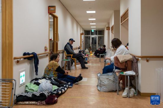 1月3日,人們在日本石川縣輪島市一處容納超700人的臨時避難所內休息。 新華社記者 張笑宇 攝