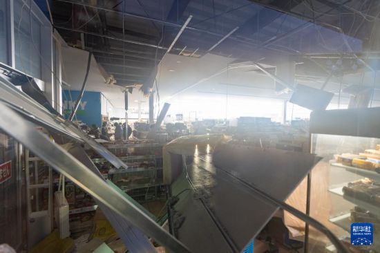 ?1月3日,在日本石川縣輪島市,市民在一家超市里購物。該超市在地震中部分損毀。