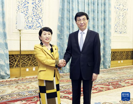 1月19日,中共中央政治局常委、全國政協主席王滬寧在北京會見由日本社民黨黨首福島瑞穗率領的代表團。新華社記者 劉衛兵 攝
