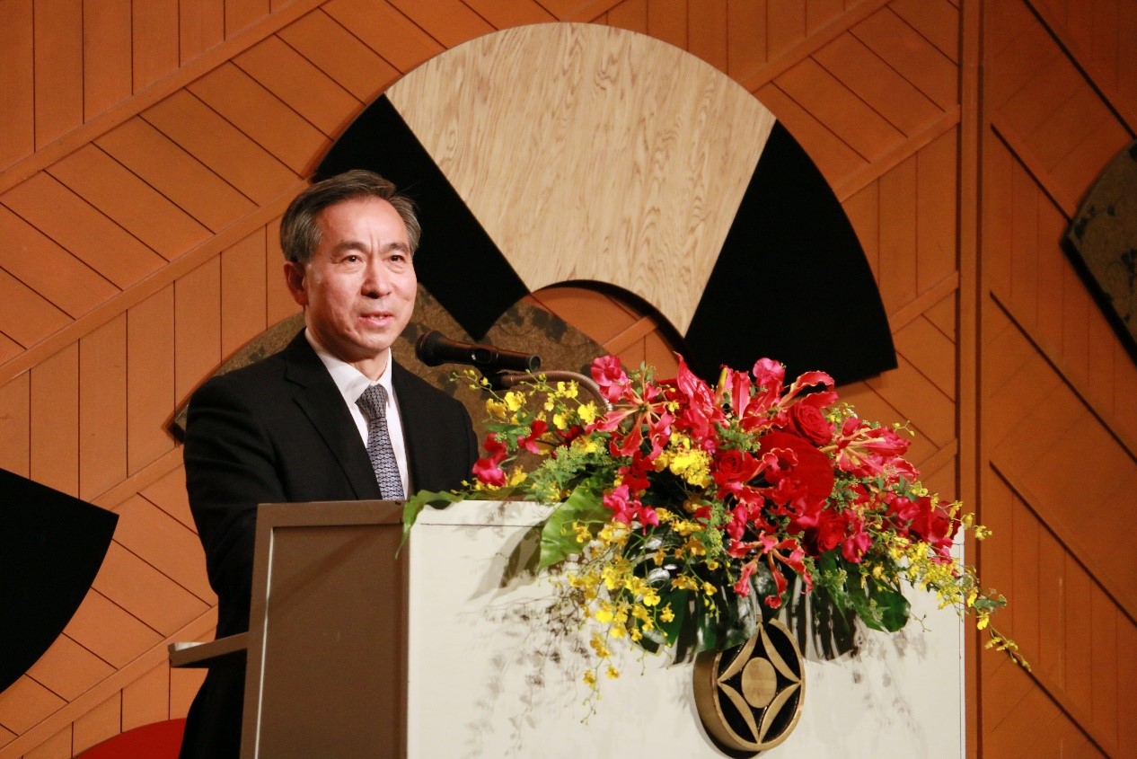 王家馴致祝酒辭,對中國貿促會、在日中企協各會員單位為促進中日經貿交流合作做出的貢獻表達了誠摯感謝。他表示,在日中企協20多年來在使館的指導和關懷下,從十幾家企業發展到擁有160多家會員單位,在中日經貿及友好交流中做出重要貢獻。今后將不斷深化兩國務實合作,攜手實現中日共贏發展。