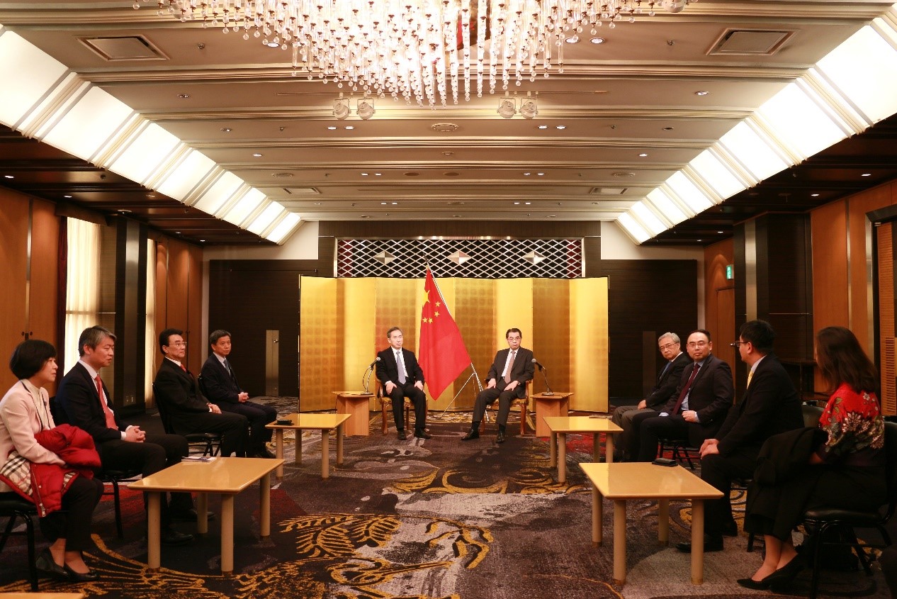 吳江浩對代表團一行表示歡迎。吳大使指出,去年11月,習近平主席同岸田首相在舊金山舉行會晤,重新確認全面推進兩國戰略互惠關系,就深化兩國交流合作達成一系列重要共識,為中日關系改善發展指明方向。經貿合作是中日關系的重要組成部分,期待以此次代表團訪日為契機,加強雙方對話交流,開啟中日經貿合作新局面。