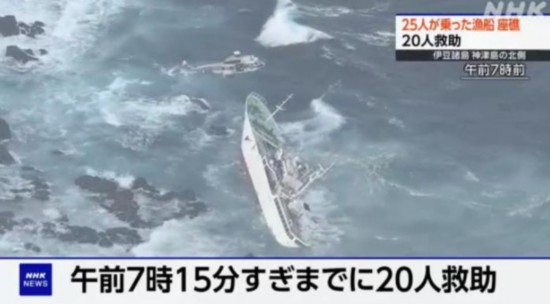 中新網3月4日電 據日本廣播協會(NHK)報道,當地時間3日晚,日本伊豆諸島神津島北側一艘載有25人的漁船觸礁,其中1人下落不明。