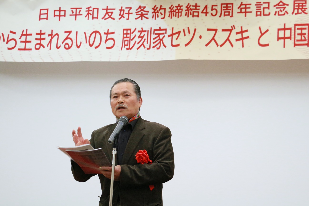 日本著名雕刻家鈴木節男致辭。人民網 許可攝