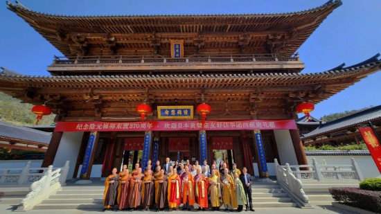 日本黃檗宗友好訪中團一行3月12日在福建福清黃檗山萬福寺祖庭合影留念。新華社記者魏培全攝
