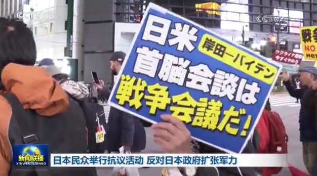 央視網消息(新聞聯播):9日,部分日本民眾在東京舉行抗議活動,反對日本政府擴張軍力。他們還表示,日本政府不認真反省歷史,反而試圖加強與美國在軍事方面的合作,這是滑向戰爭的錯誤道路,極其危險。