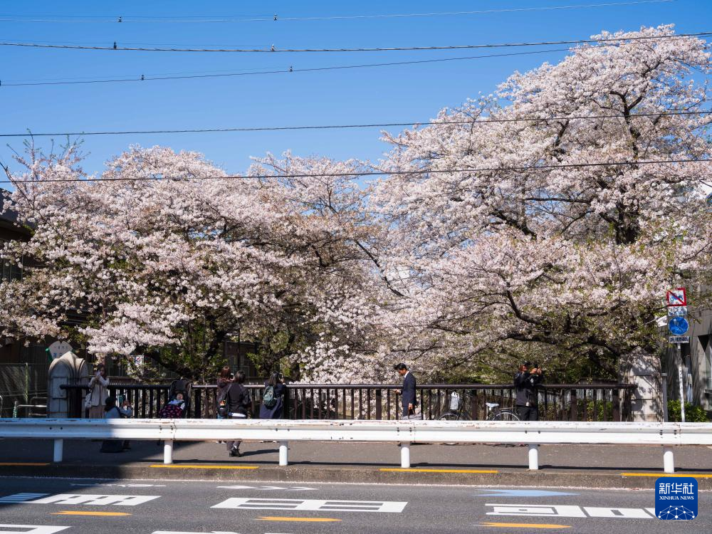 4月10日,人們在日本東京神田川沿岸賞櫻。新華社記者 張笑宇 攝
