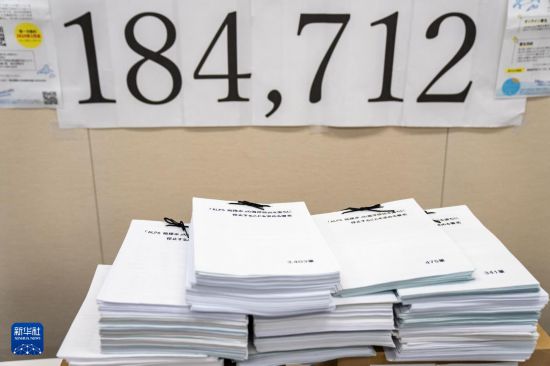 這是4月24日在日本東京眾議院第二議員會館拍攝的簽名材料。新華社記者 張笑宇 攝