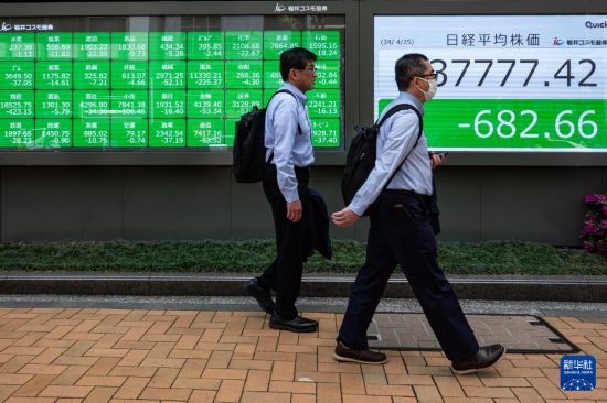 4月25日,在日本東京,行人走過股市信息顯示屏。新華社記者 張笑宇 攝