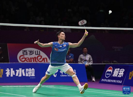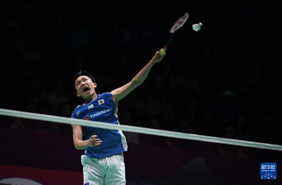 ??4月28日,日本隊選手桃田賢斗在男單比賽中回球。他2比0戰勝捷克隊選手科普日瓦。新華社記者 侯昭康 攝