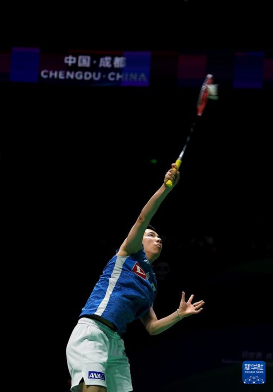 ??4月28日,日本隊選手渡邊航貴在男單比賽中回球。他2比0戰勝捷克隊選手克拉爾。新華社記者 侯昭康 攝