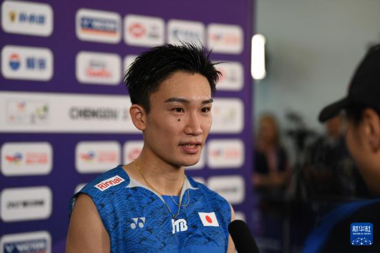 ??4月28日,日本隊選手桃田賢斗在男單比賽后接受采訪。他2比0戰勝捷克隊選手科普日瓦。新華社記者 侯昭康 攝