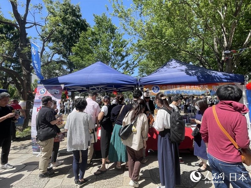 排隊領取資料和參與抽獎的日本民眾。中國駐東京旅游辦事處供圖