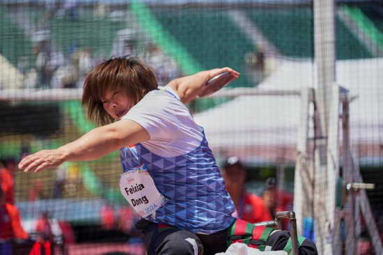 蟬聯里約、東京奧運會女子鐵餅F55級冠軍的董飛霞以26米37的成績奪得銀牌,哥倫比亞選手薩拉薩爾以26米88的個人最好成績奪冠,墨西哥的卡薩雷斯獲得銅牌。