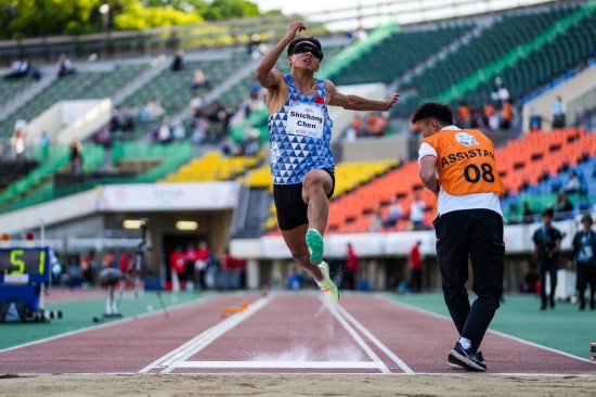 新華社日本神戶5月17日電(記者岳晨星 張伊伊)第11屆世界殘疾人田徑錦標賽17日在日本神戶開幕,中國隊多名運動員亮相首日比賽,贏得2金2銀2銅。小將陳世昌在男子跳遠T11級比賽中打破賽會紀錄,奪得中國隊在本屆比賽的首枚金牌;蔣芬芬拿到女子400米T37級冠軍。