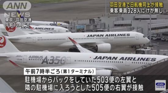 日本航空公司介紹,位于羽田機場第一航站樓的503航班在從停機場向后移動時,左翼恰好與前行中的505航班右翼相碰。503航班的乘客轉乘其它航班,505航班在事發2個半小時后起航。
