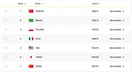 輸掉這場比賽后,中國女排積分被扣9.3分,世界排名被日本隊反超,滑落至亞洲第二。