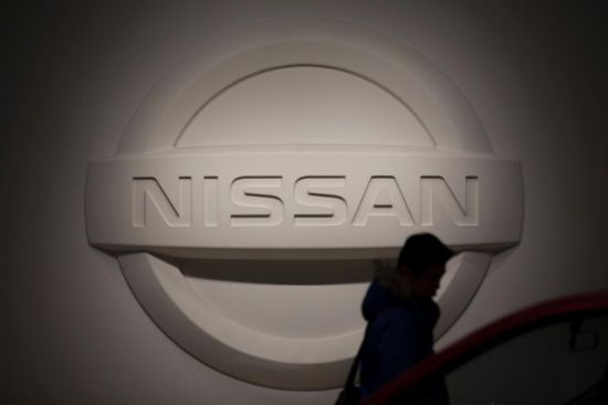 2019年1月7日,在日本橫濱日產汽車公司總部,一名男子從日產標志前經過。新華社記者杜瀟逸攝