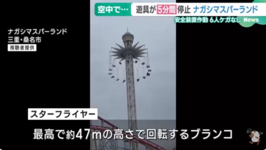 桑名市長島游樂園的旋轉飛椅突然停轉(日本名古屋電視臺)