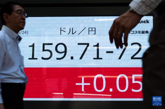 6月24日,行人走過日本東京一處顯示實時匯率的電子屏幕。新華社記者 張笑宇 攝
