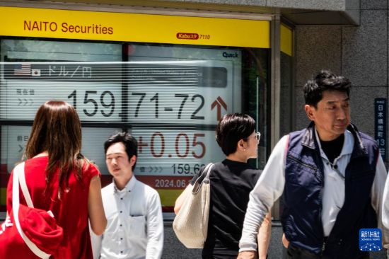 6月24日,行人走過日本東京一處顯示實時匯率的電子屏幕。新華社記者 張笑宇 攝