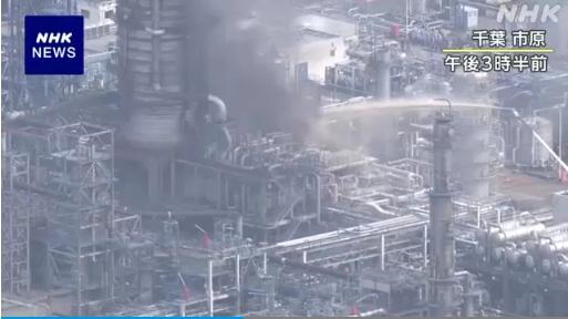 中新網7月2日電 據日本廣播協會(NHK)報道,當地時間7月2日下午,日本千葉縣消防部門接到報警稱,出光興產公司位于該縣市原市的分支機構發生危險品起火事件,現場有油泄漏,并冒出黑煙。