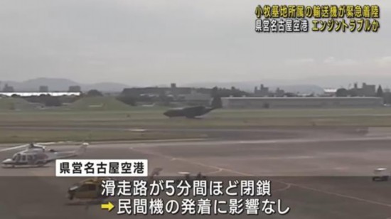 中新網7月3日電 據日本名古屋電視臺報道,當地時間3日上午,一架日本航空自衛隊小牧基地的C130H運輸機起飛后發生引擎故障,隨后在名古屋機場緊急降落。