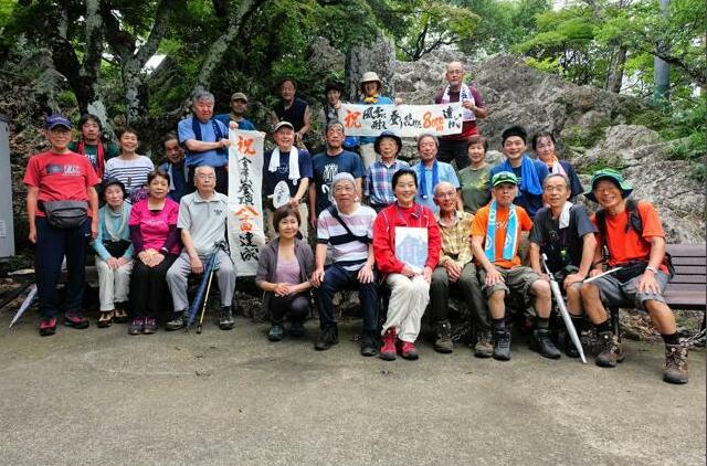 中村征子(前排從右側數第5人)實現登頂金華山8000次后與山友合影。(圖片來源:《朝日新聞》)