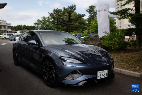 這是6月11日在位于日本靜岡縣御殿場市的試駕活動現場拍攝的比亞迪當地市場新推出的海豹四輪驅動版電動汽車。新華社記者 岳晨星 攝