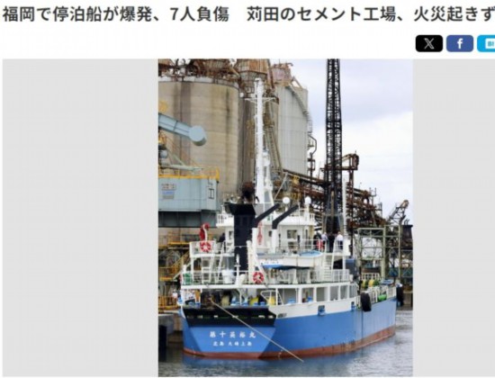 中新網7月11日電 據日本共同社報道,當地時間11日,日本福岡縣警方和消防部門表示,當天?吭谠摽h一工廠碼頭的一艘船發生爆炸,造成7人受傷,其中3人傷勢嚴重。